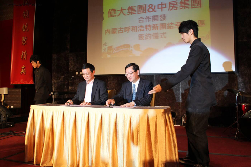 2009年10月26日(ri)中(zhong)房(fang)集(ji)團(tuan)執(zhi)行(xing)總(zong)裁(cai)張(zhang)文(wen)清(qing)與(yu)上(shang)海(hai)億(yi)大(da)董(dong)事(shi)長(chang)鄧(deng)文(wen)聰(cong),在(zai)北(bei)京(jing)市(shi)希(xi)爾(er)頓(dun)逸(yi)林(lin)大(da)酒(jiu)店(dian)就(jiu)中(zhong)房(fang)集(ji)團(tuan)同(tong)上(shang)海(hai)億(yi)大(da)實(shi)業(ye)有(you)限(xian)公(gong)司(si)資(zi)金(jin)合(he)作(zuo)等(deng)相(xiang)關(guan)事(shi)宜(yi),簽(qian)署(shu)了(le)《財務合作協議書》,確定了上海億大實業有限公司將為呼和浩特市中房房地產開發有限責任公司提供資金支持,用於呼和浩特市團結小區項目建設。