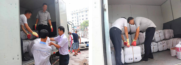 8月27日,中房濰坊公司“愛心救助小組”接連奮戰數小時,采購並搬運救災物資。