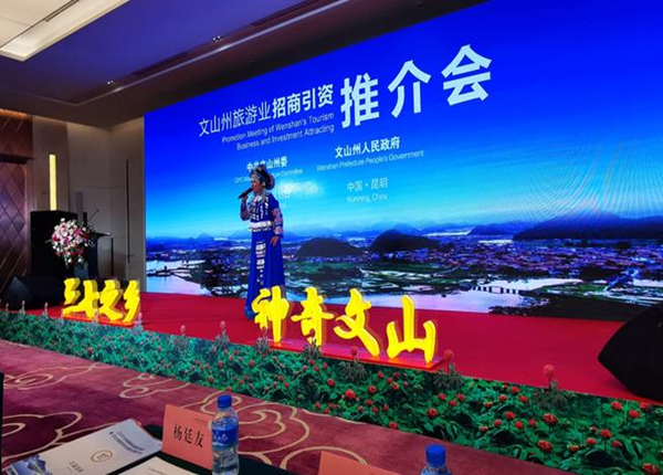 借助旅交會平台優勢,文山州委州政府於15日下午在會展中心九號館茉莉廳召開旅遊業招商引資推介會,會議由州人大常委會主任、州旅遊產業發展領導小組組長徐昌碧主持,州委書記童誌榮向參加國際旅遊交易會的企業和媒體推介文山、分享文山,其中重點推薦了普者黑是雲南最好的康養旅遊目的地。