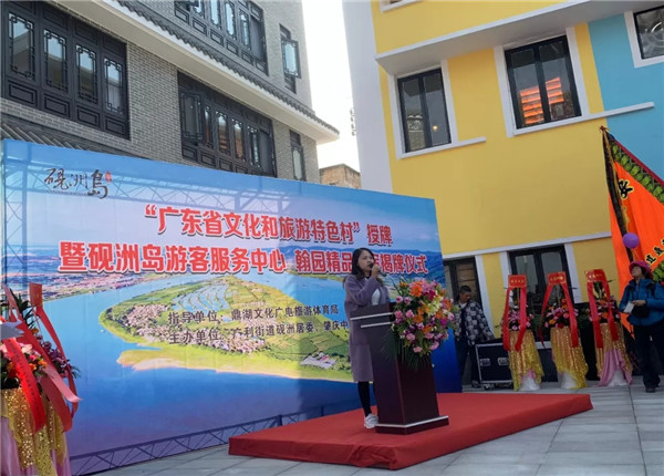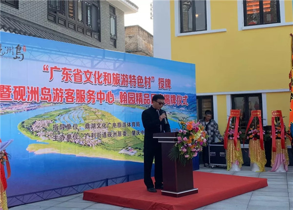 近日,“廣東省文化和旅遊特色村”授牌暨硯洲島遊客服務中心——翰園精品民宿揭牌儀式在肇慶市鼎湖區硯洲島隆重舉行。中房肇慶公司開發建設的文旅項目——硯洲島榮獲“廣東省文化和旅遊特色村”。鼎湖區文化廣電旅遊體育局局長陳嫣妮、鼎湖區硯洲社區主任李展鵬、肇慶中硯旅遊休閑產業開發有限公司董事長陳國剛出席活動並作精彩致辭。